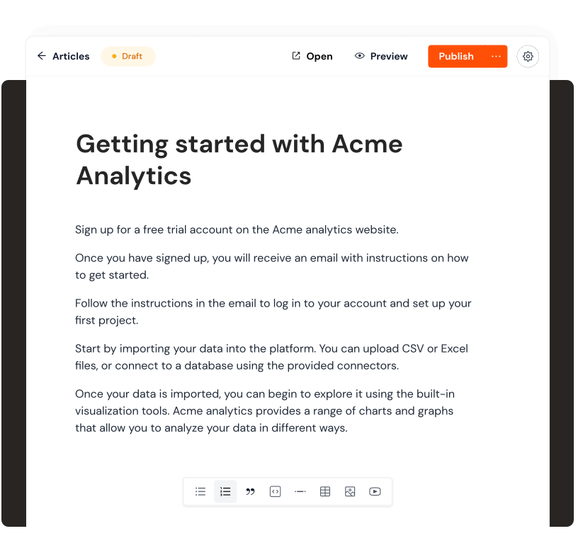 Our text editor helps you write and format content without having to worry about HTML or CSS.