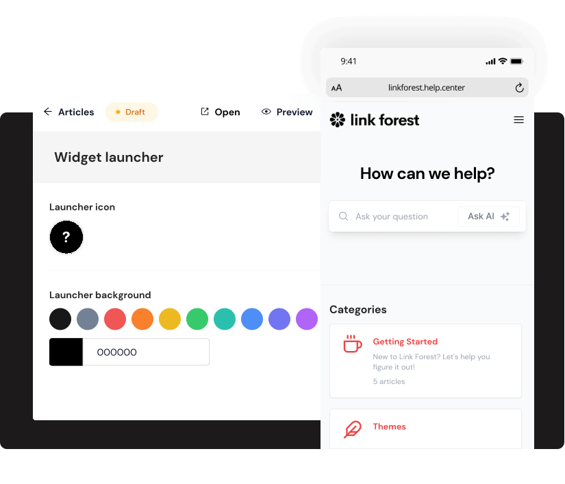 With a minimal and functional Help Center, your customers can easily find the information they need.